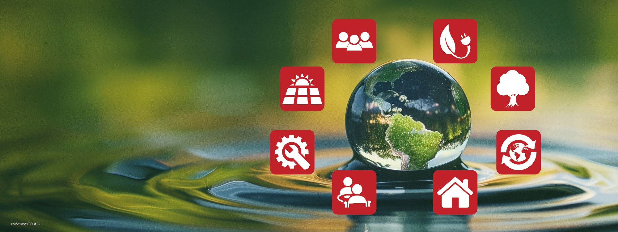 Sowohl im Neubau als auch in der Sanierung achten wir auf die Verwendung nachhaltiger Baustoffe und -materialien. Gleichermaßen fördern wir in diesem Bereich die Forschung und Entwicklung.